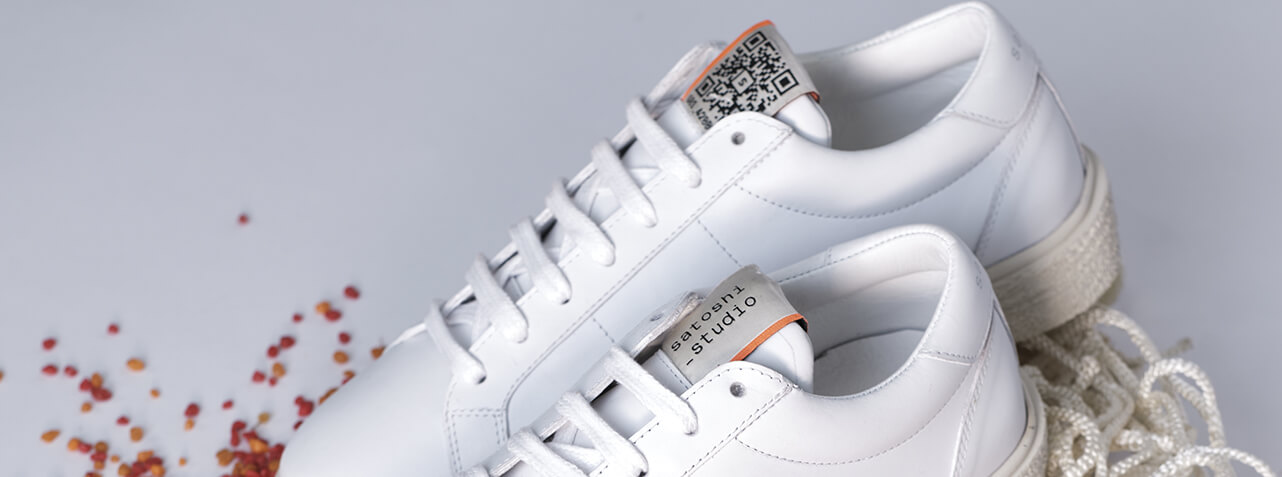 satoshi studio étiquette tissée avec un qr code